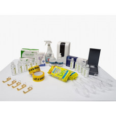 PPE pack including 3 x work posters, 100 x 3ply masks, 1 x anti bac spray, 2 x 500ml sanitiser (80%)..